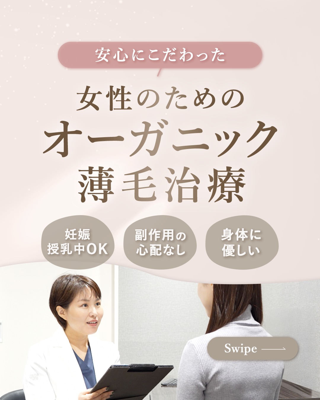 当院では、薄毛治療に関する学会に所属する医師が、一人ひとりの状態を確認しながら治療を進めています。
