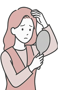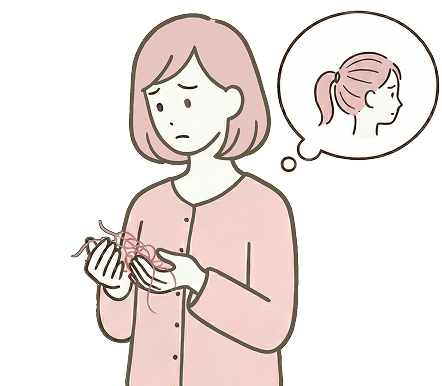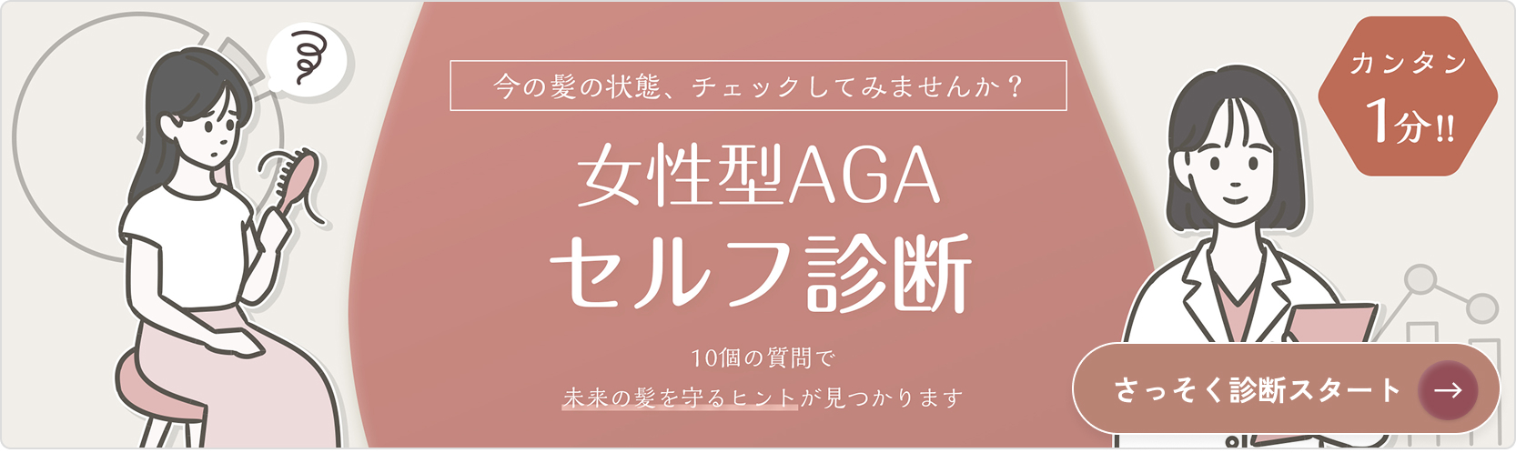 進行性びまん性脱毛と異なり、加齢性変化に加えて、女性ホルモンの低下が原因で引き起こされるものも該当します。 -
