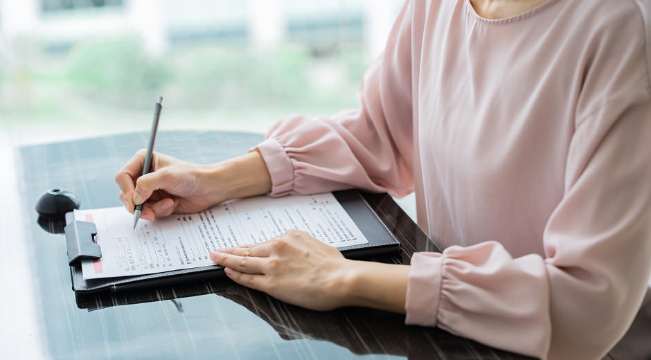 受付後すぐに個室へご案内します。抜け毛や薄毛の状態を把握するために必要な問診票の記入をしていただきます。