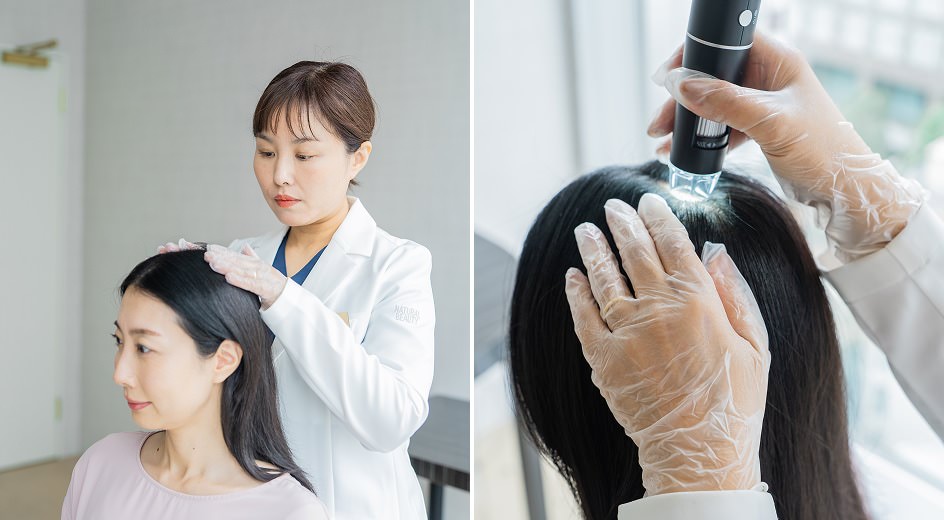 お一人おひとりのご不安やお悩みに寄り添いながらカウンセリングを行います。患者様の頭皮や毛根、お肌の状態を触診と必要に応じてマイクロスコープにより診断いたします。