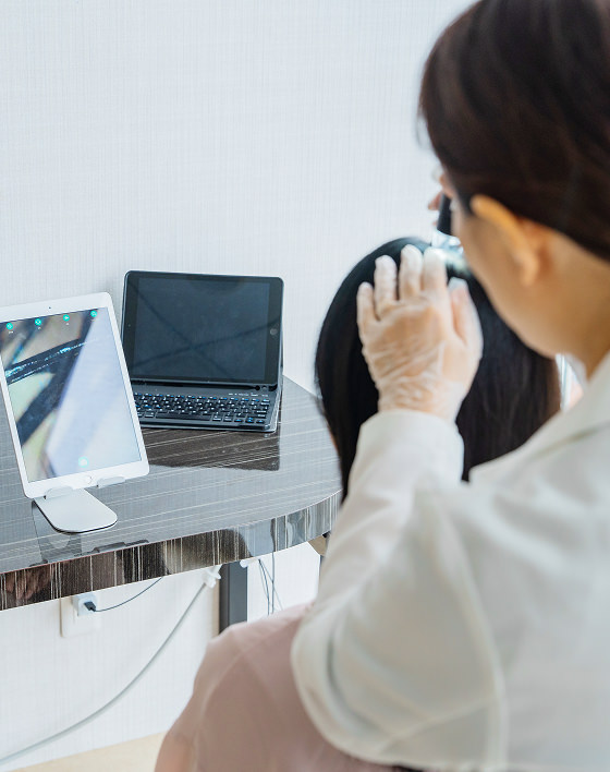 お一人おひとりのご不安やお悩みに寄り添いながらカウンセリングを行います。患者様の頭皮や毛根、お肌の状態を触診と必要に応じてマイクロスコープにより診断いたします。
